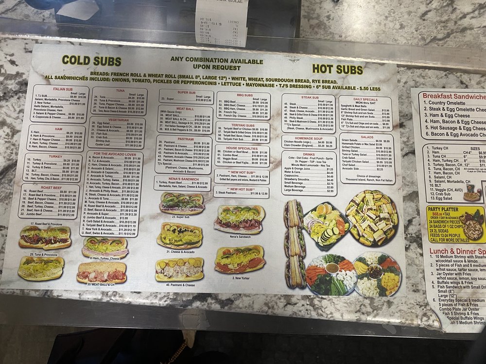 What sets T J's apart is not only the quality of their freshly made sandwiches but also the welcoming atmosphere created by the friendly staff. Customer favorites include the shrimp subs and the classic Italian ham, praised for their vivid flavors and fresh ingredients.
