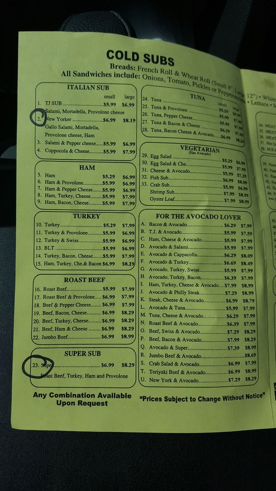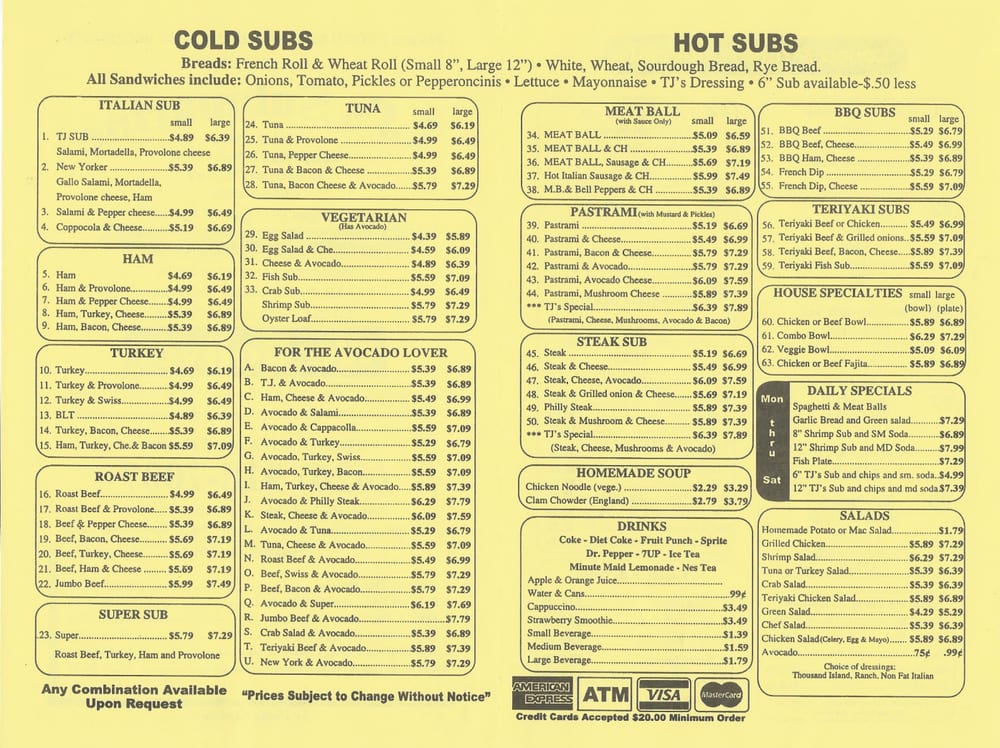 Introducing the Menu at T J's Submarines